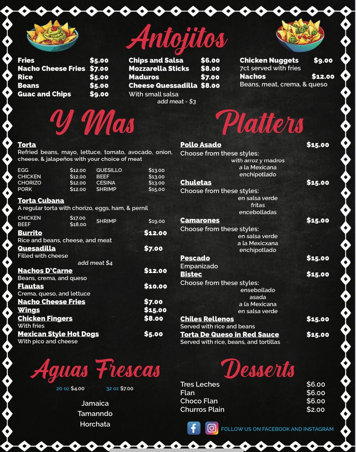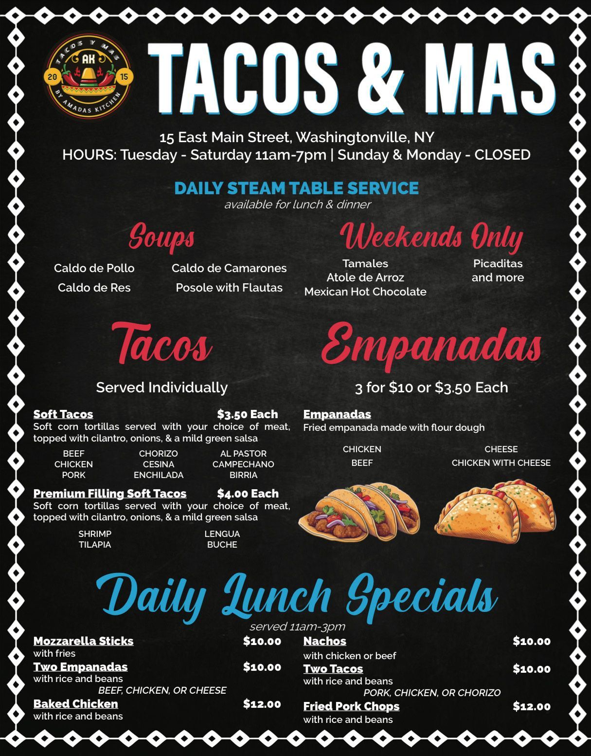 That's what we're all about at Tacos Y Mas. Great food in an inviting atmosphere at affordable prices. Our goal is to serve you great food with a smile!